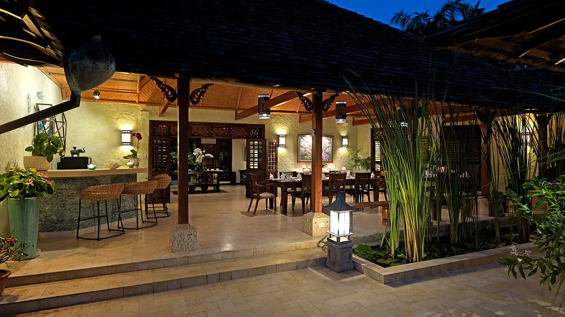 From the wet bar, your butler will quench your thirst with icy cocktails; and from the ultra-modern kitchen, your chef will treat you to an array of mouth-watering island delicacies. All enjoyed in the dining pavilion or al fresco on the deck overlooking the bay. For a special treat, try a beach barbecue complete with a roaring bonfire.